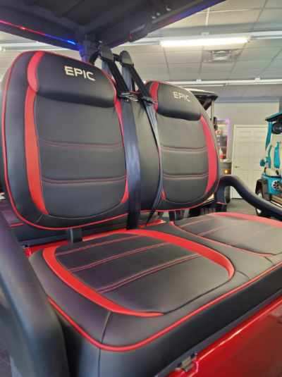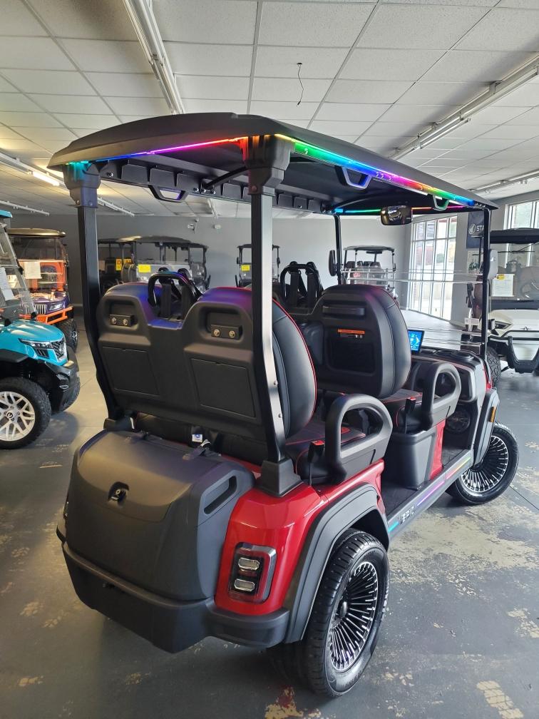 The brand new EPIC E40FX is the best golf cart on the market today! Furnished with every imaginable feature, the forward-facing four-seater EPIC E40FX comes in six stylish colors and two height options. Premium 14” wheels and street-ready tires provide a solid foundation for every journey on every terrain, no matter what lift height is selected. With an abundance of storage, superior built-in marine-grade sound system and speakers, and stunning accent lighting, this EPIC golf cart illuminates the possibilities for fun and adventure.
