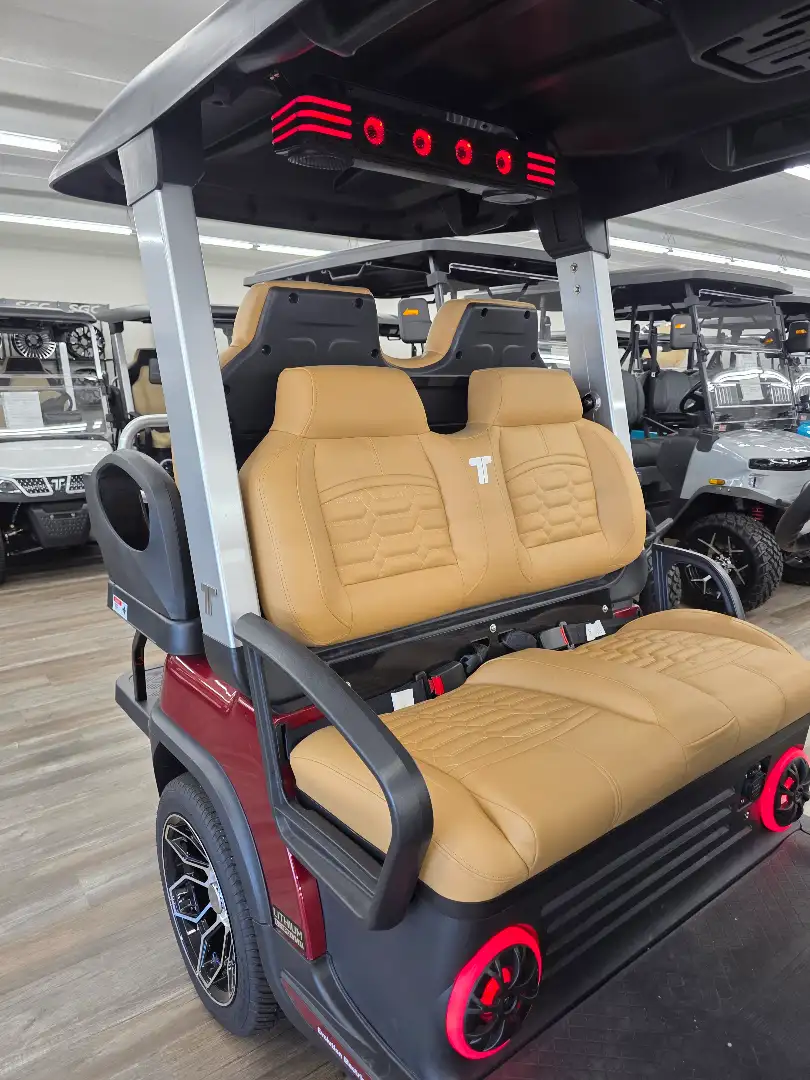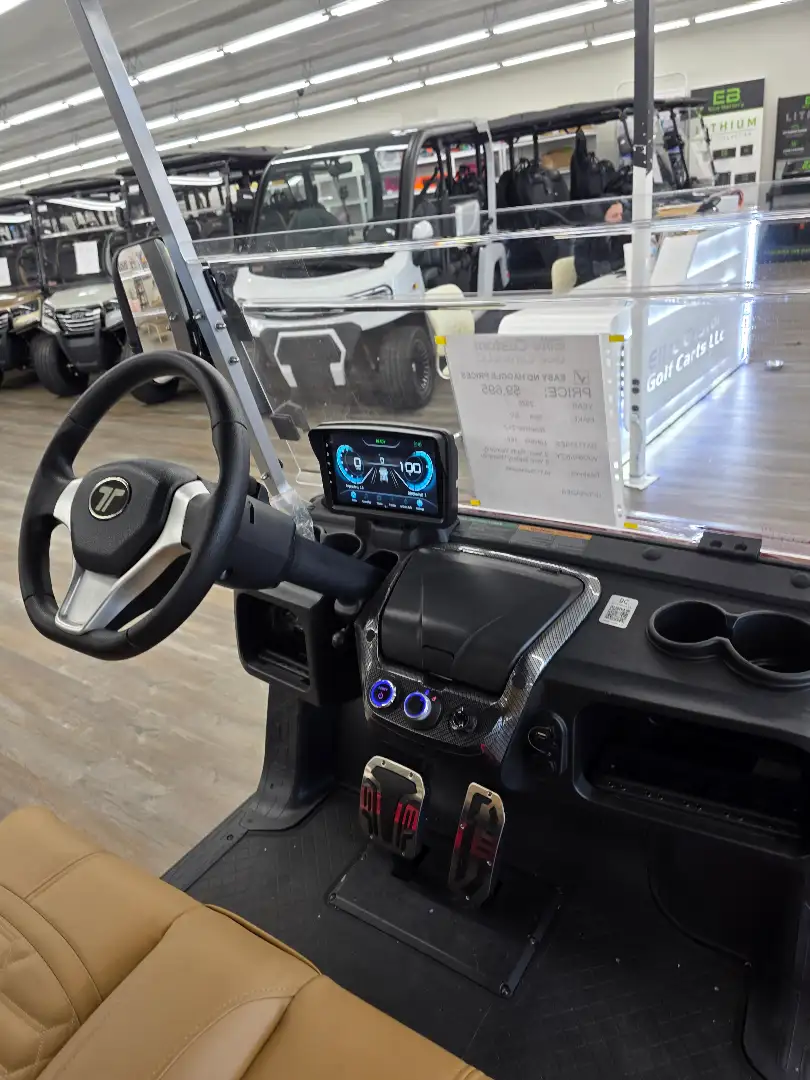 This stylish golf cart combines modern technology with comfort and safety, making it an excellent choice for golf enthusiasts.