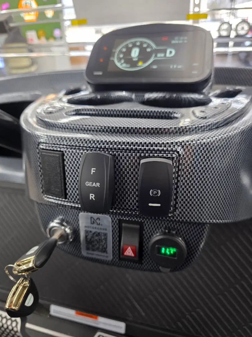 Forward/Reverse Switch, USB and 12V Plugs, Cubby Storage, Multiple Cup Holders, Key Switch, Instrumentation Cluster