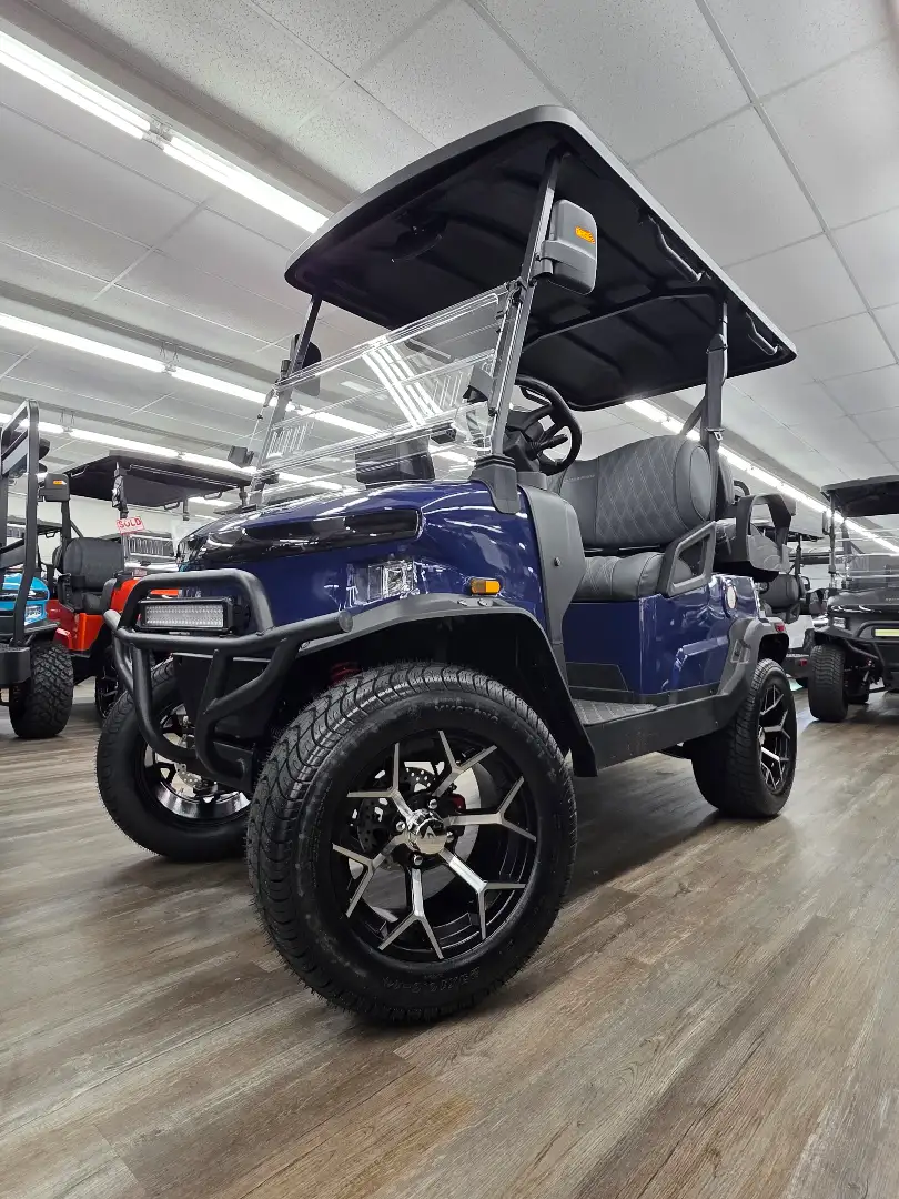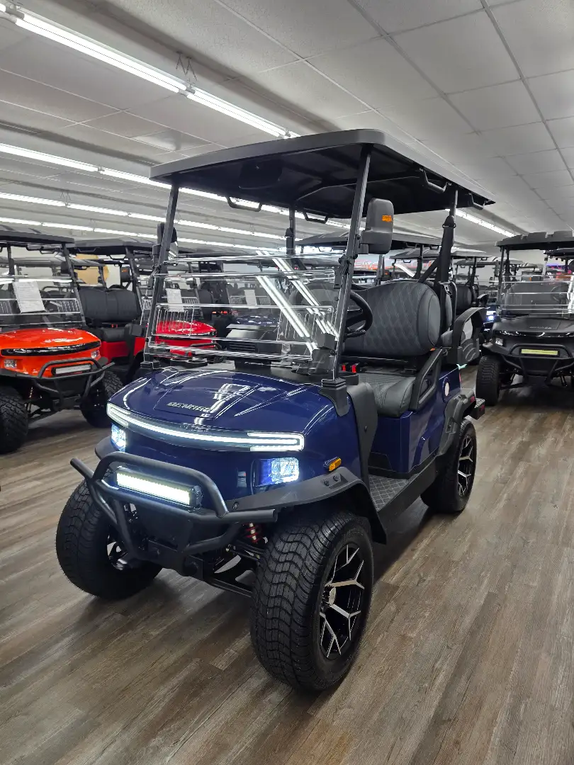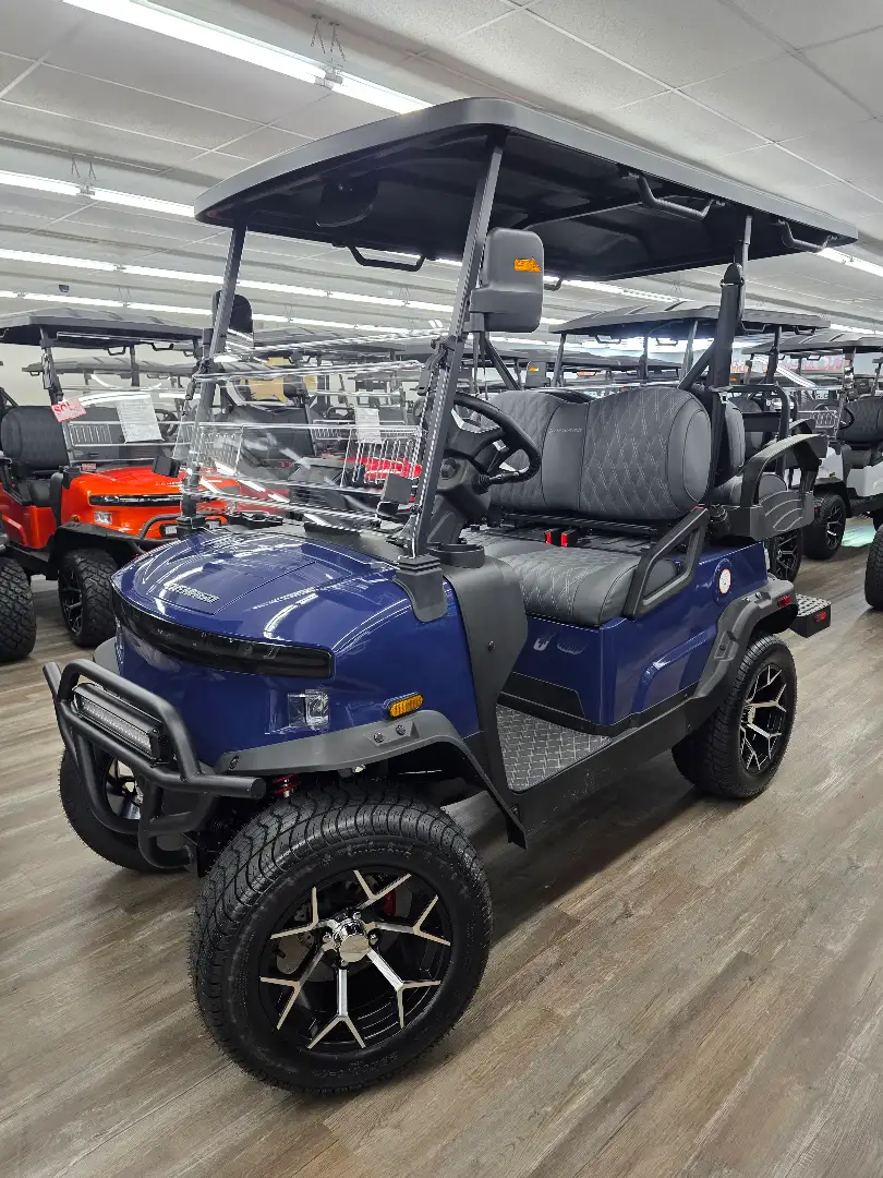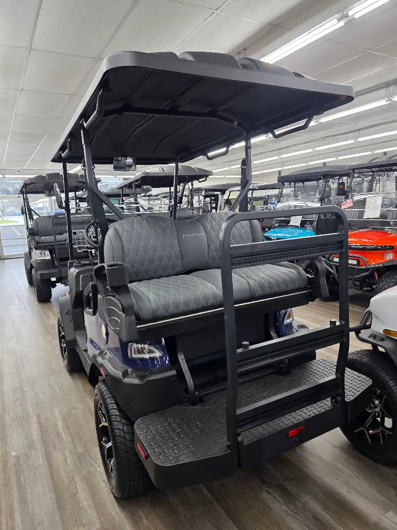 The 2026 Denago EV Nomad XL is a versatile golf cart with a powerful 5 kW motor and a robust lithium battery offering up to 40 miles of city range. It combines advanced tech features with comfort, making it perfect for both leisurely drives and practical transport duties. The Nomad XL’s all-terrain capabilities and stylish design make it a top choice for those seeking efficiency and style.