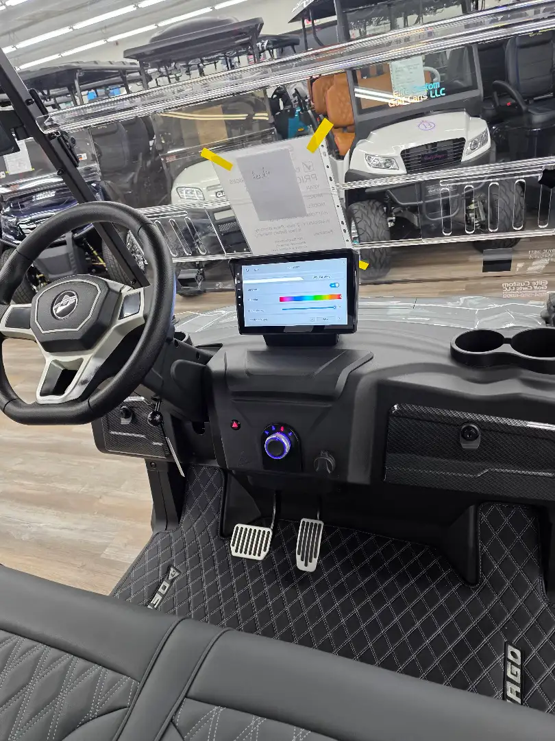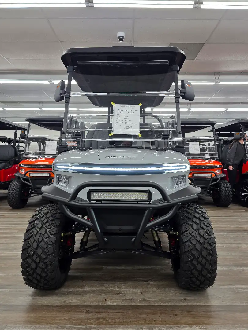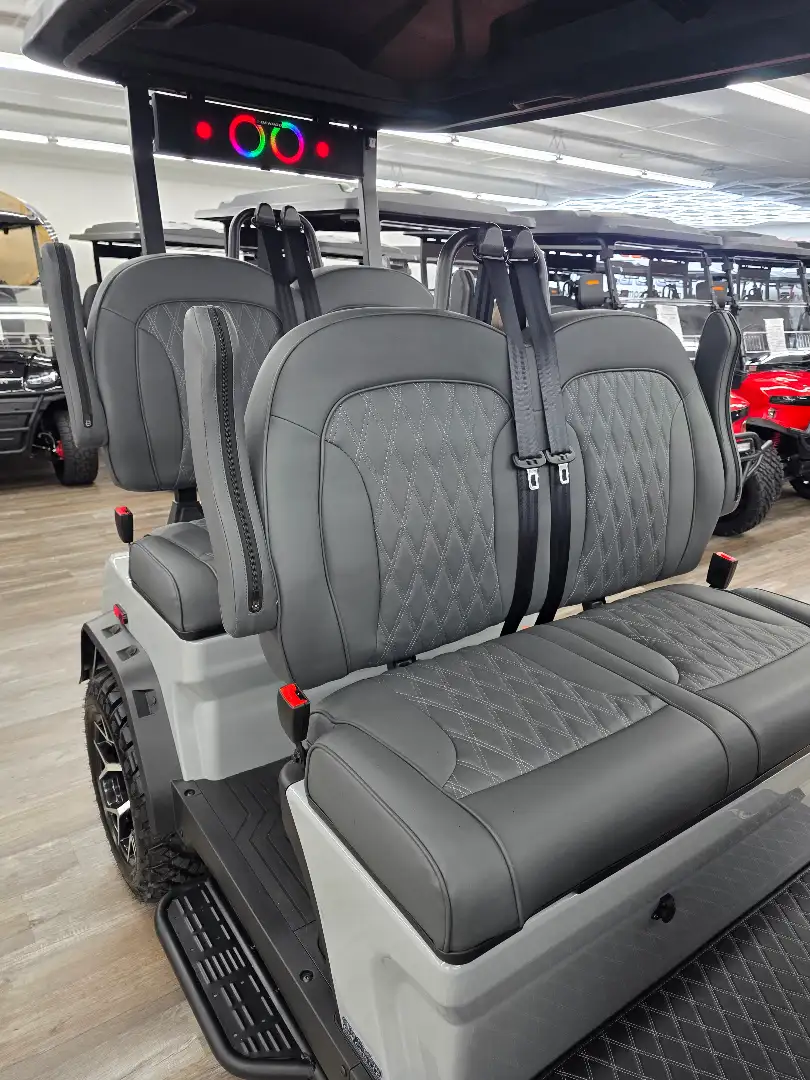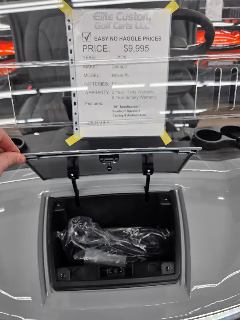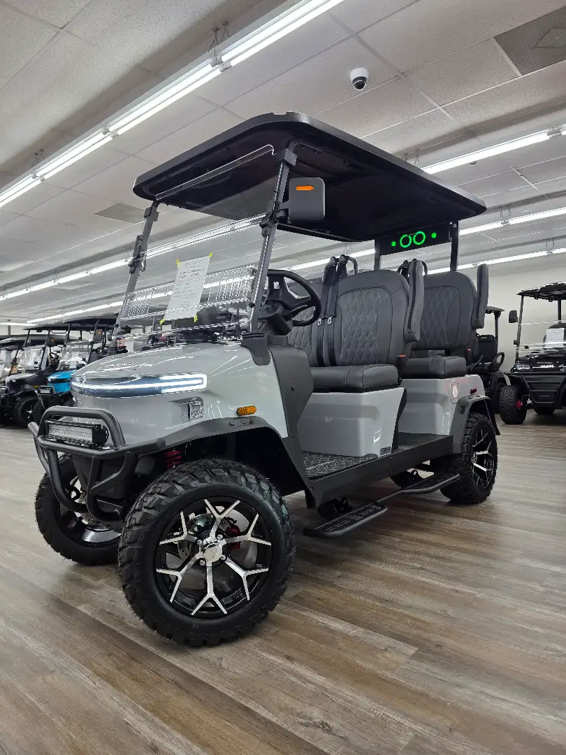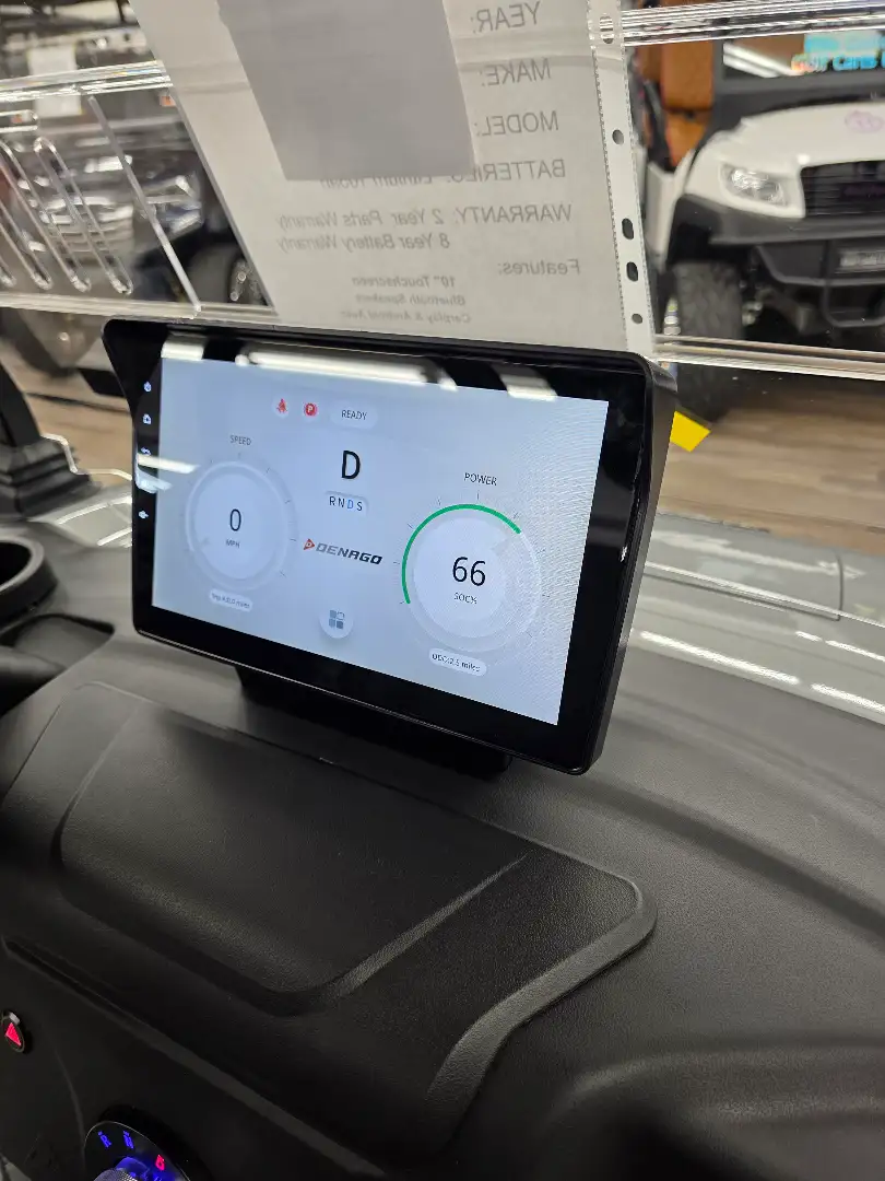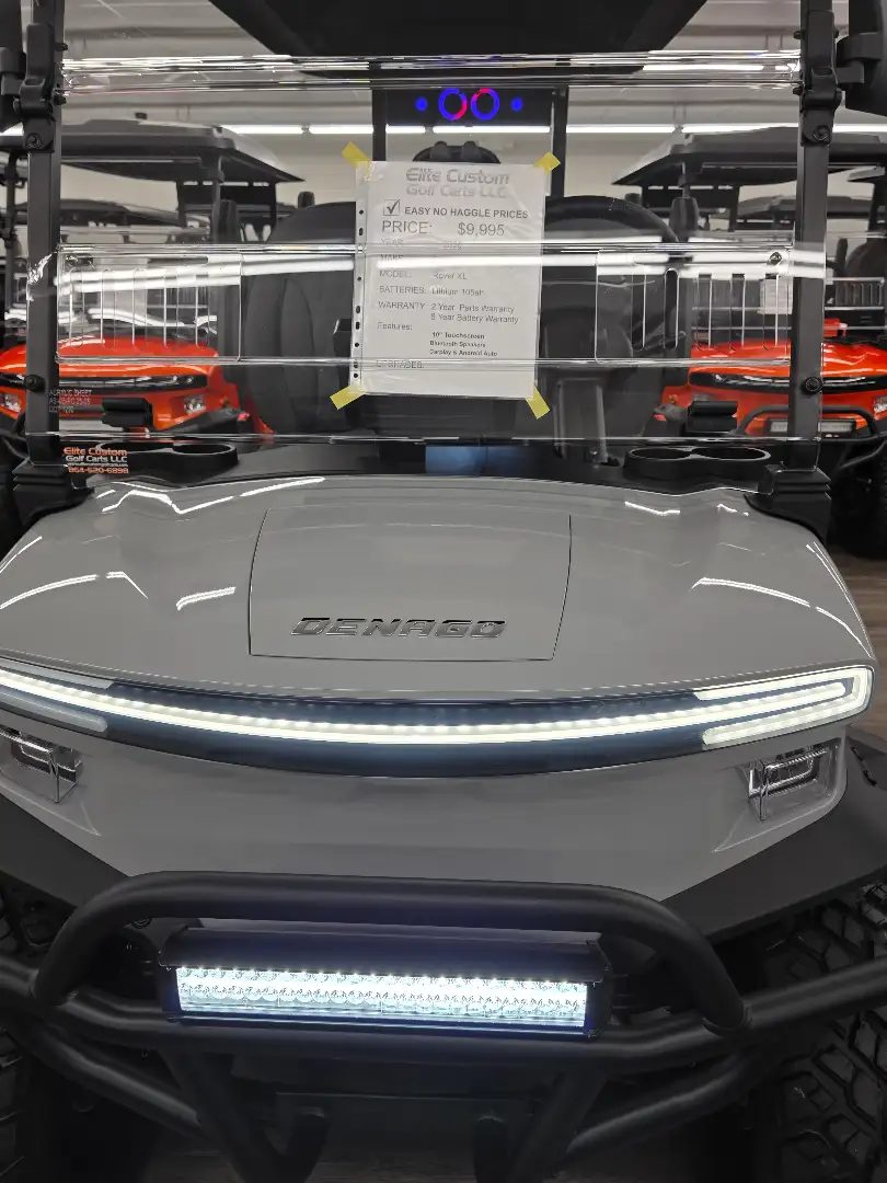 The 2026 Denago EV Rover XL is a cutting-edge golf cart featuring a robust 5 kW AC electric motor and a 51.2V LiFePO4 lithium battery. Its sleek design and all-terrain functionality are complemented by high-tech features.