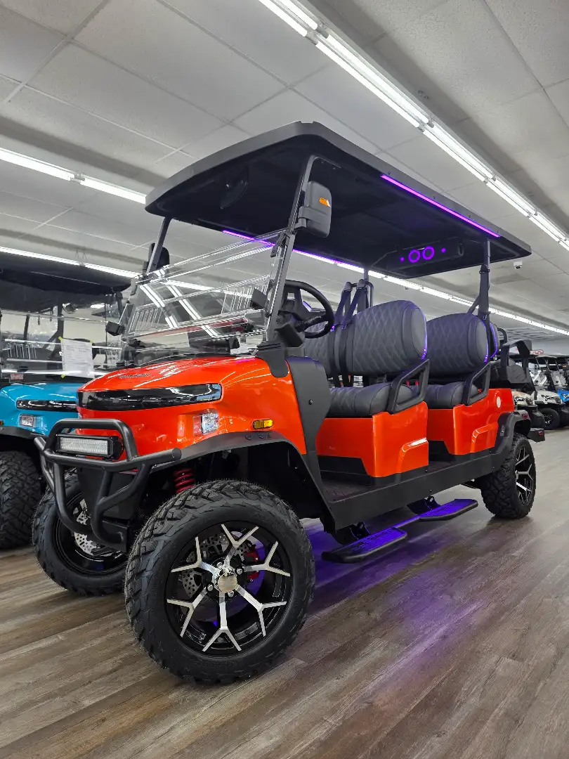 The 2026 Denago EV Rover XL6 is a robust and advanced golf cart, offering an impressive electric drive experience with a reliable range and high passenger capacity.