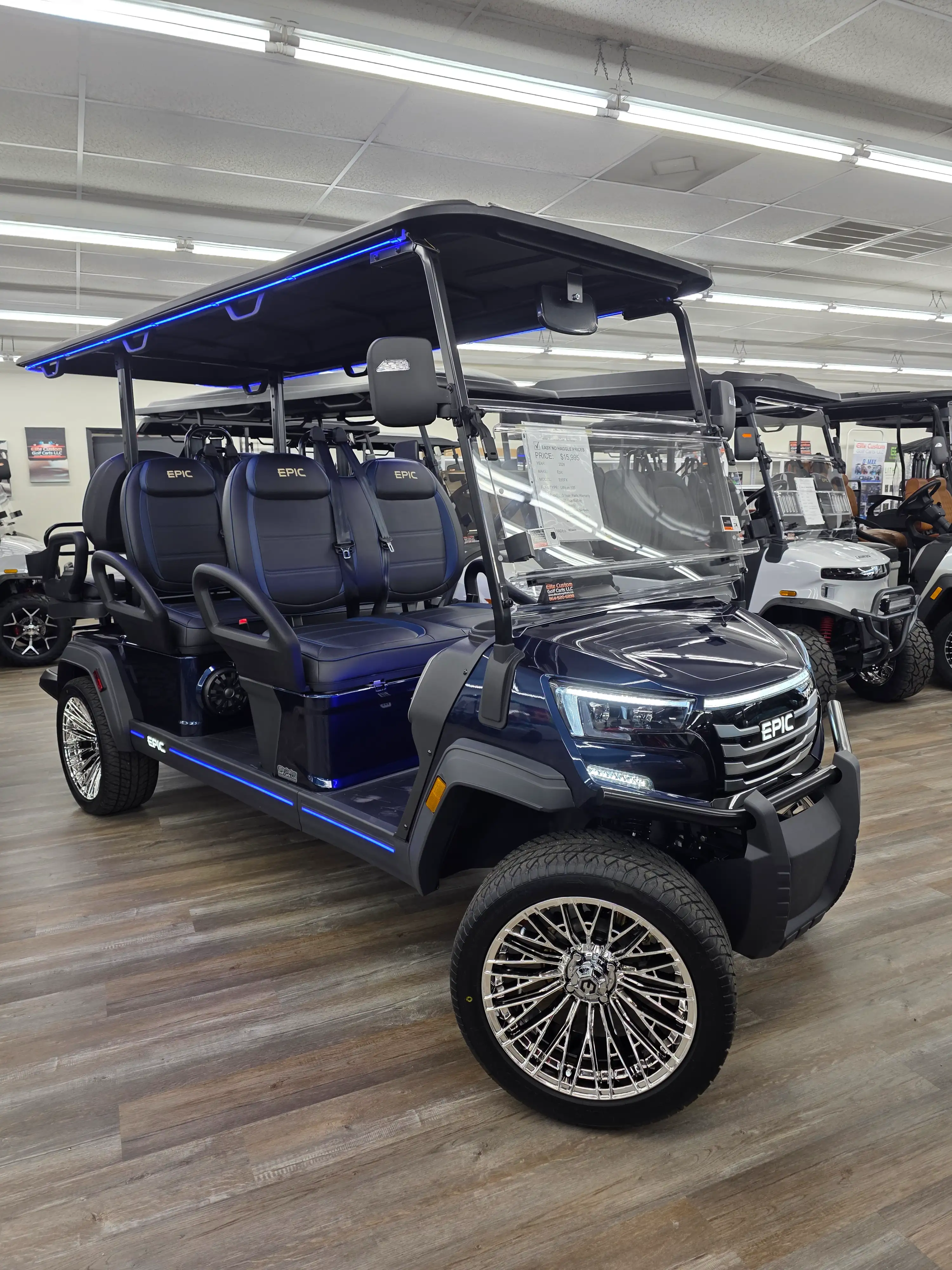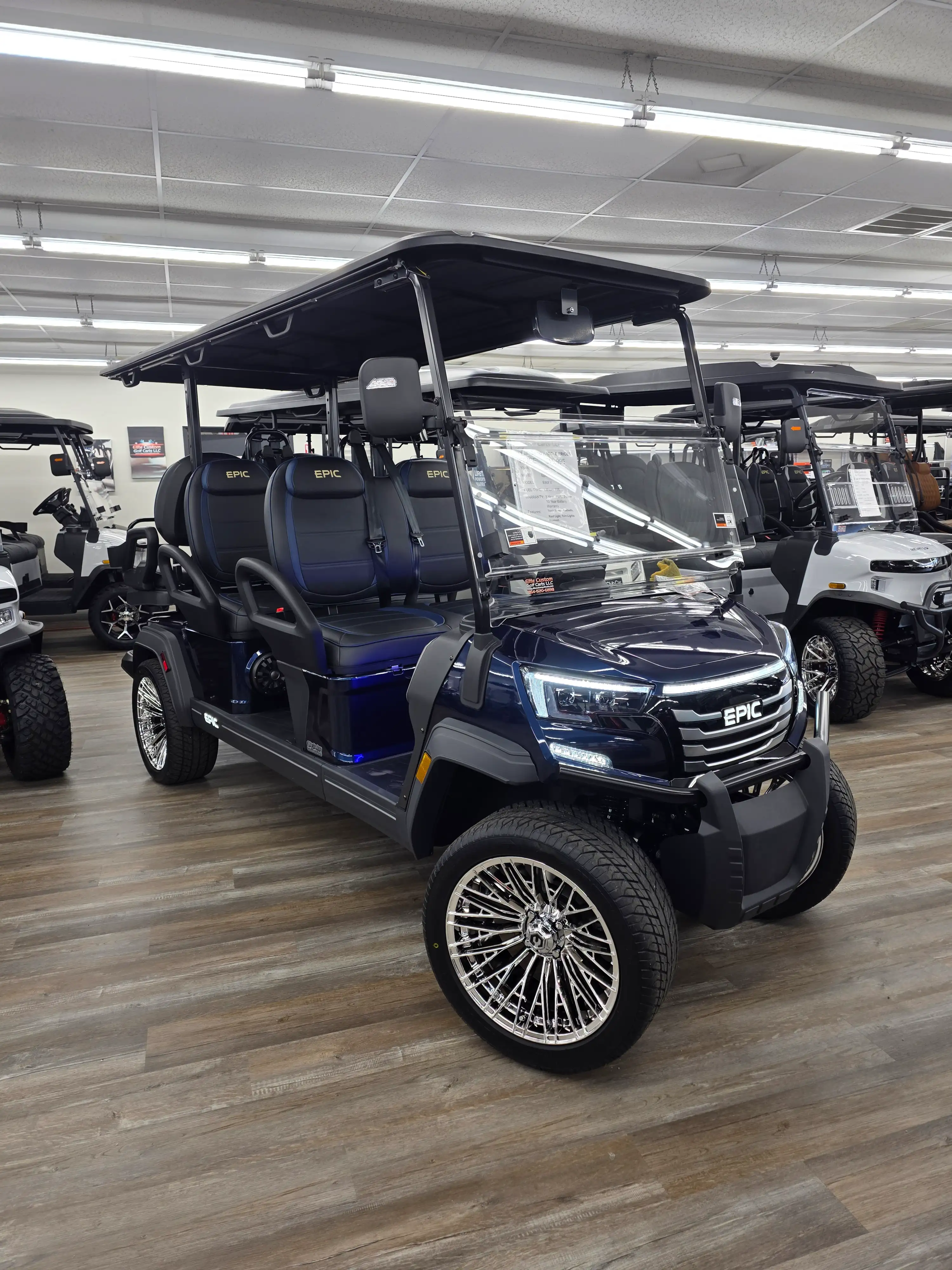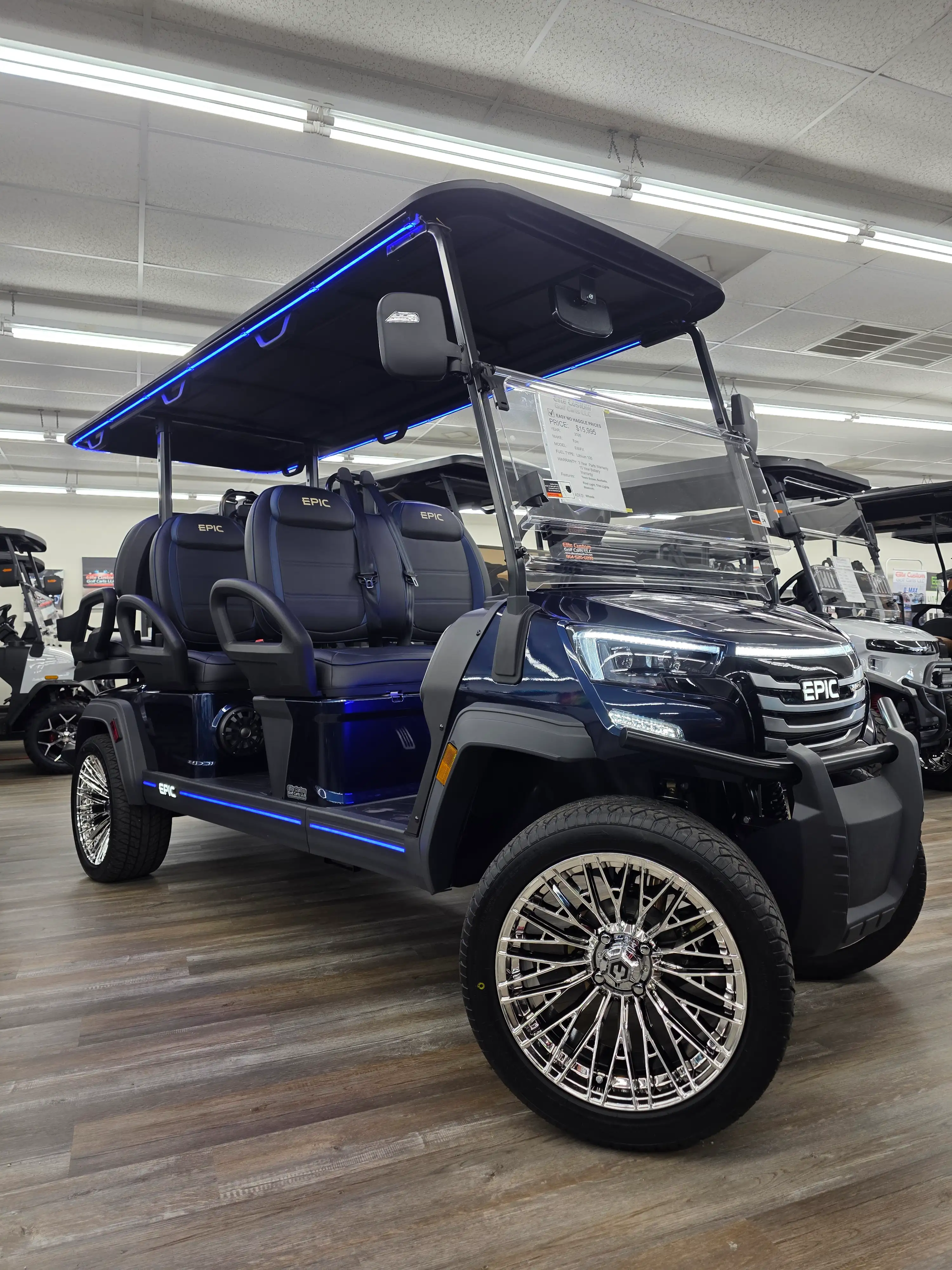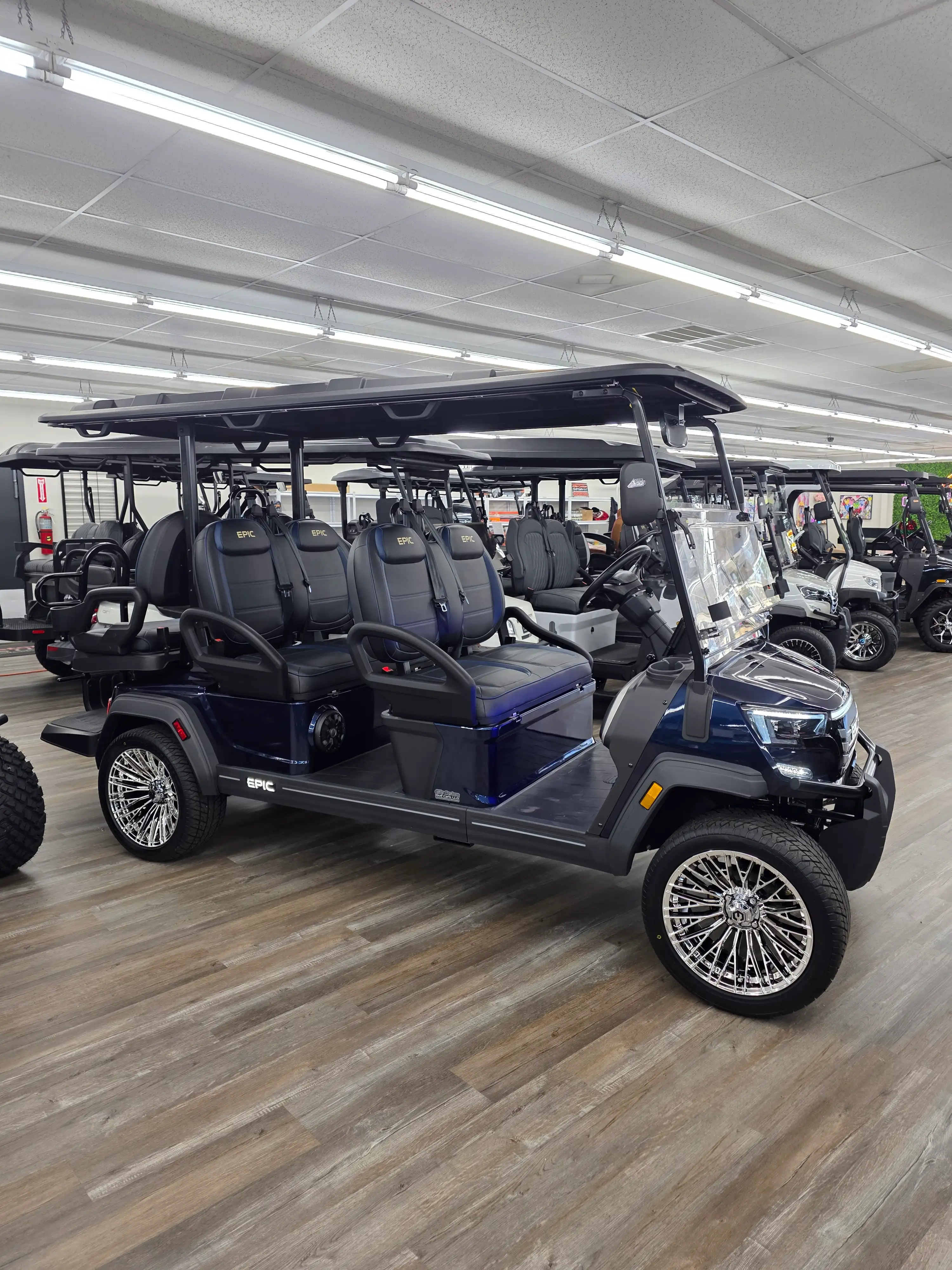 The 2026 Epic E60FX offers a powerful 6.3kW AC motor combined with a high-capacity 51.2V / 105Ah ECO Lithium battery, ensuring an impressive city range of 43.5 miles. Its stylish design is matched by its high-tech features including a 10.1” digital display.
