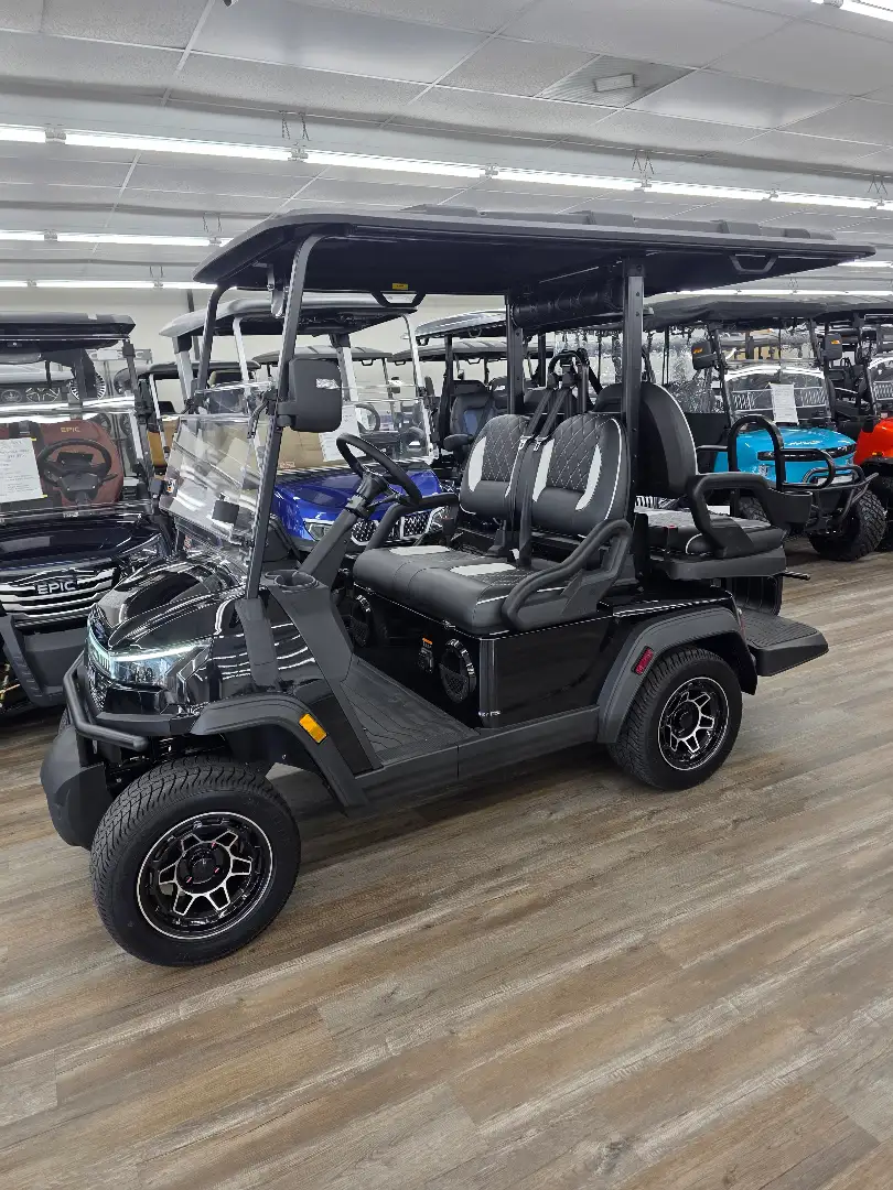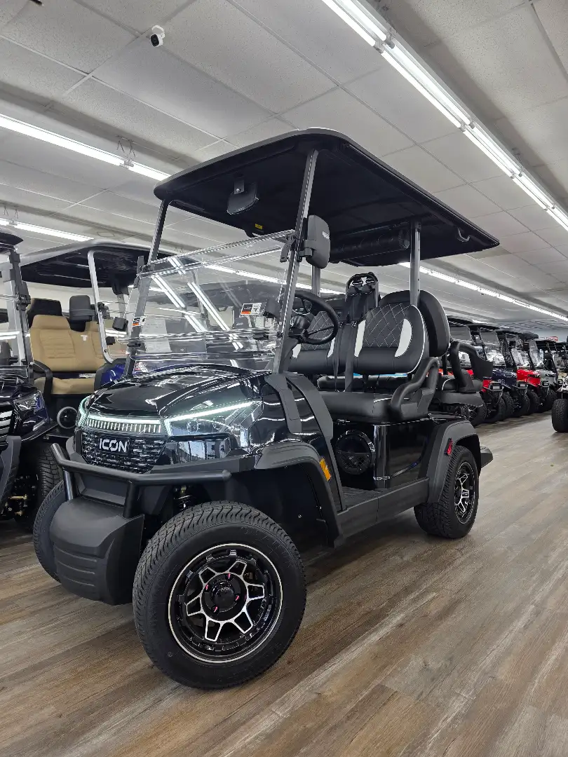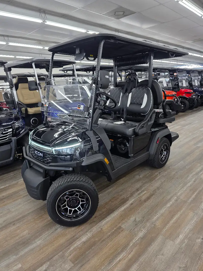 The 2026 Icon EV i40X is a robust golf cart featuring a powerful 48V ICON 5kW motor and a 51V/105Ah lithium battery, ensuring exceptional performance and reliability.