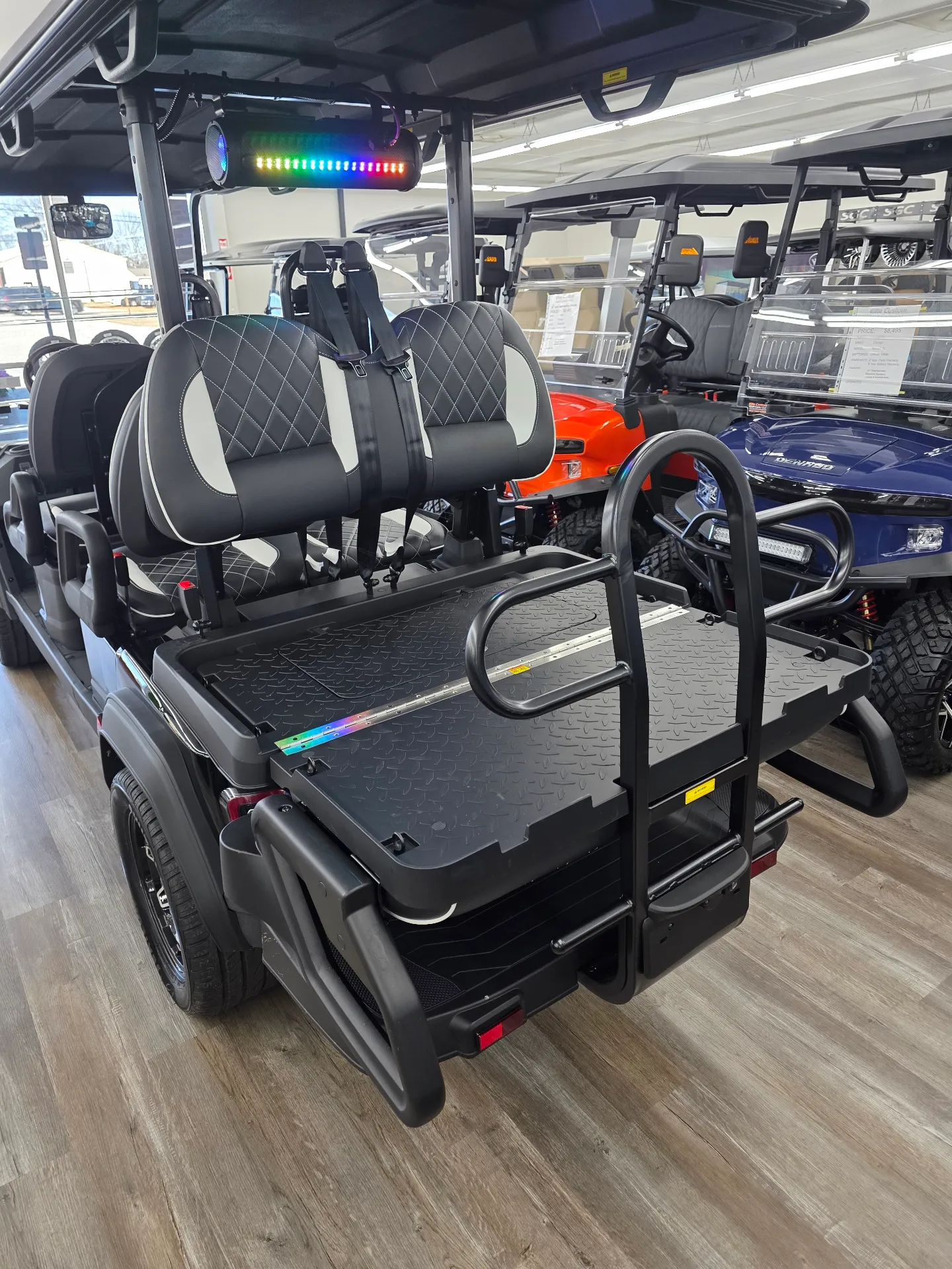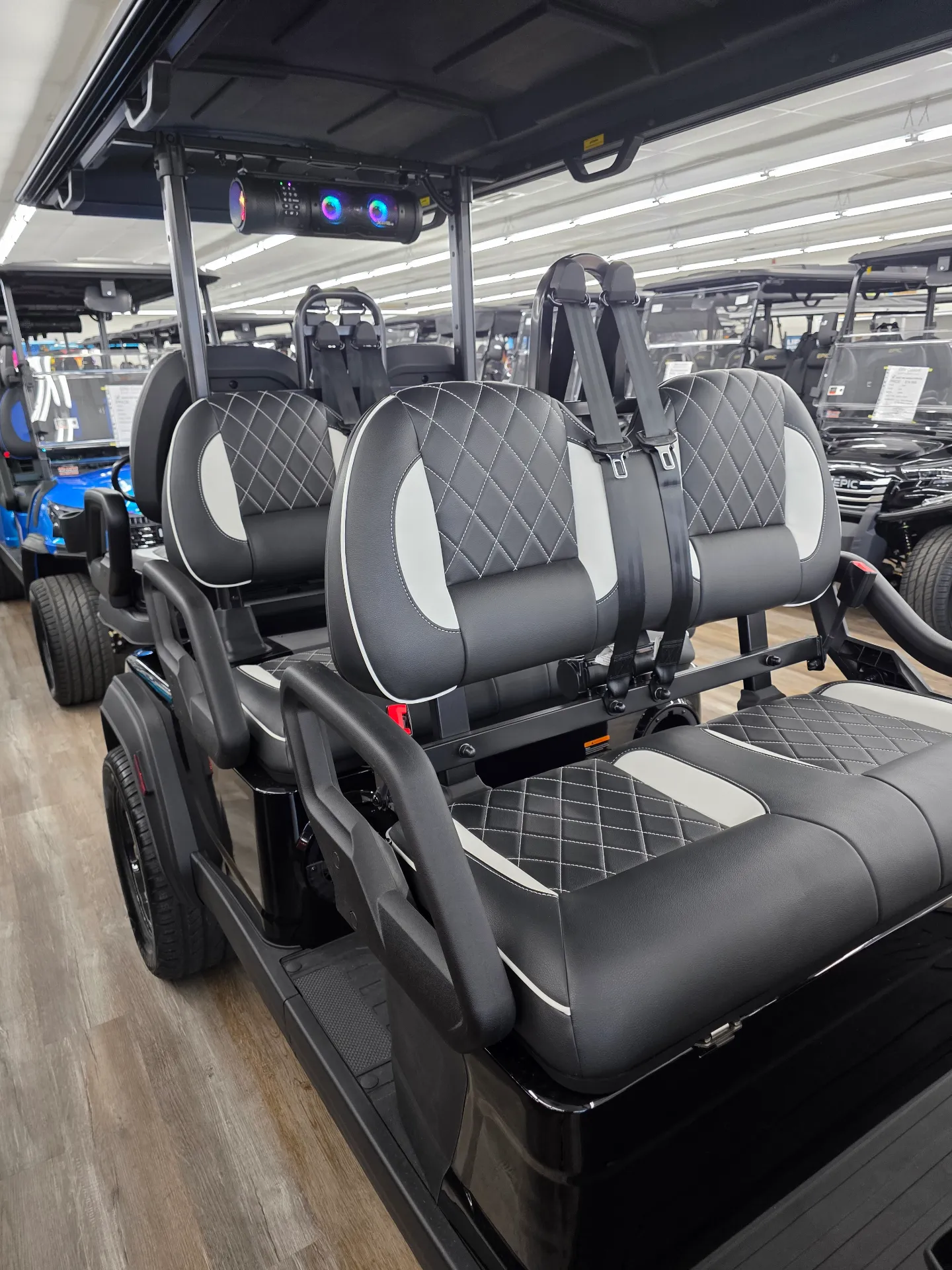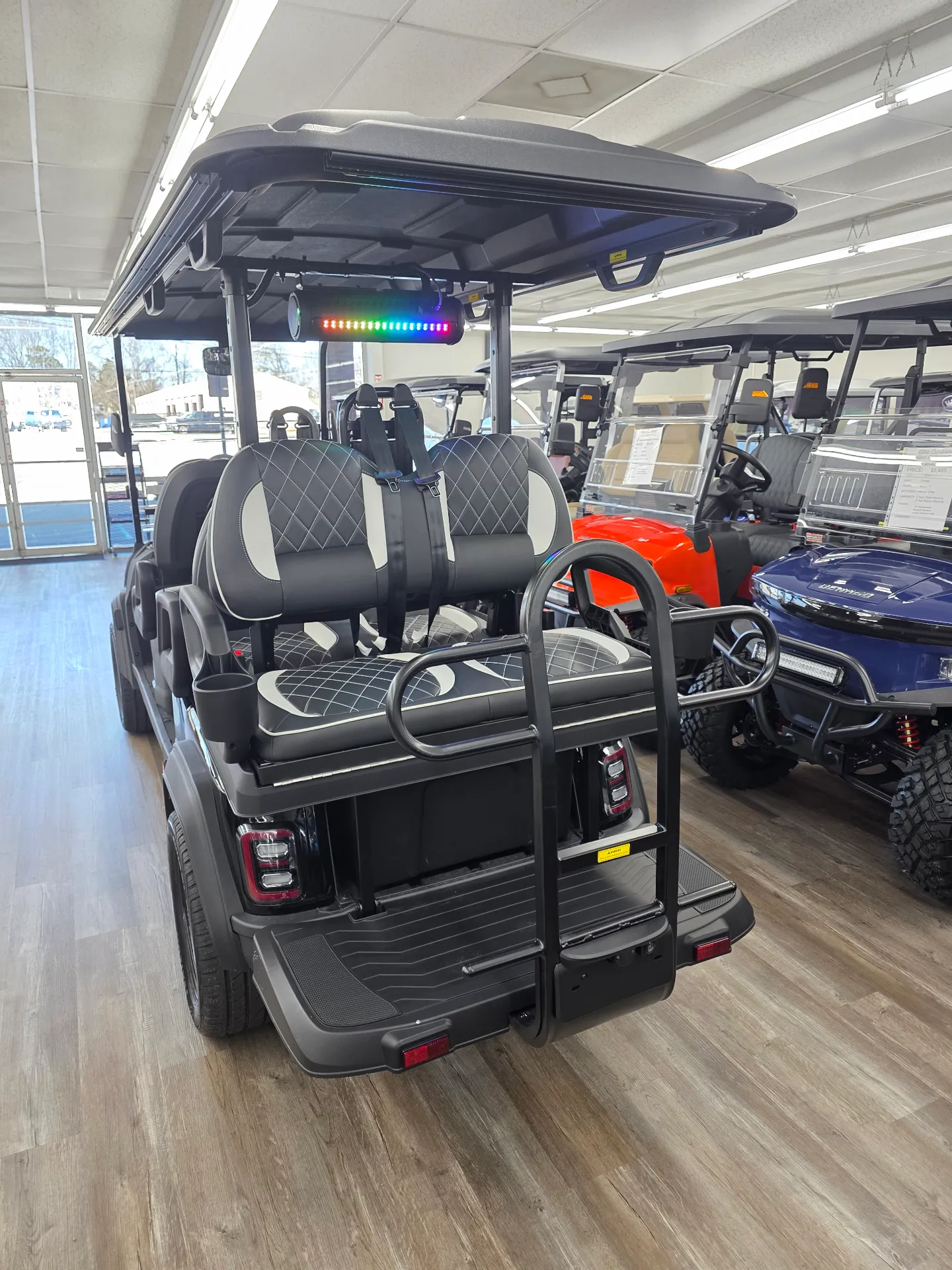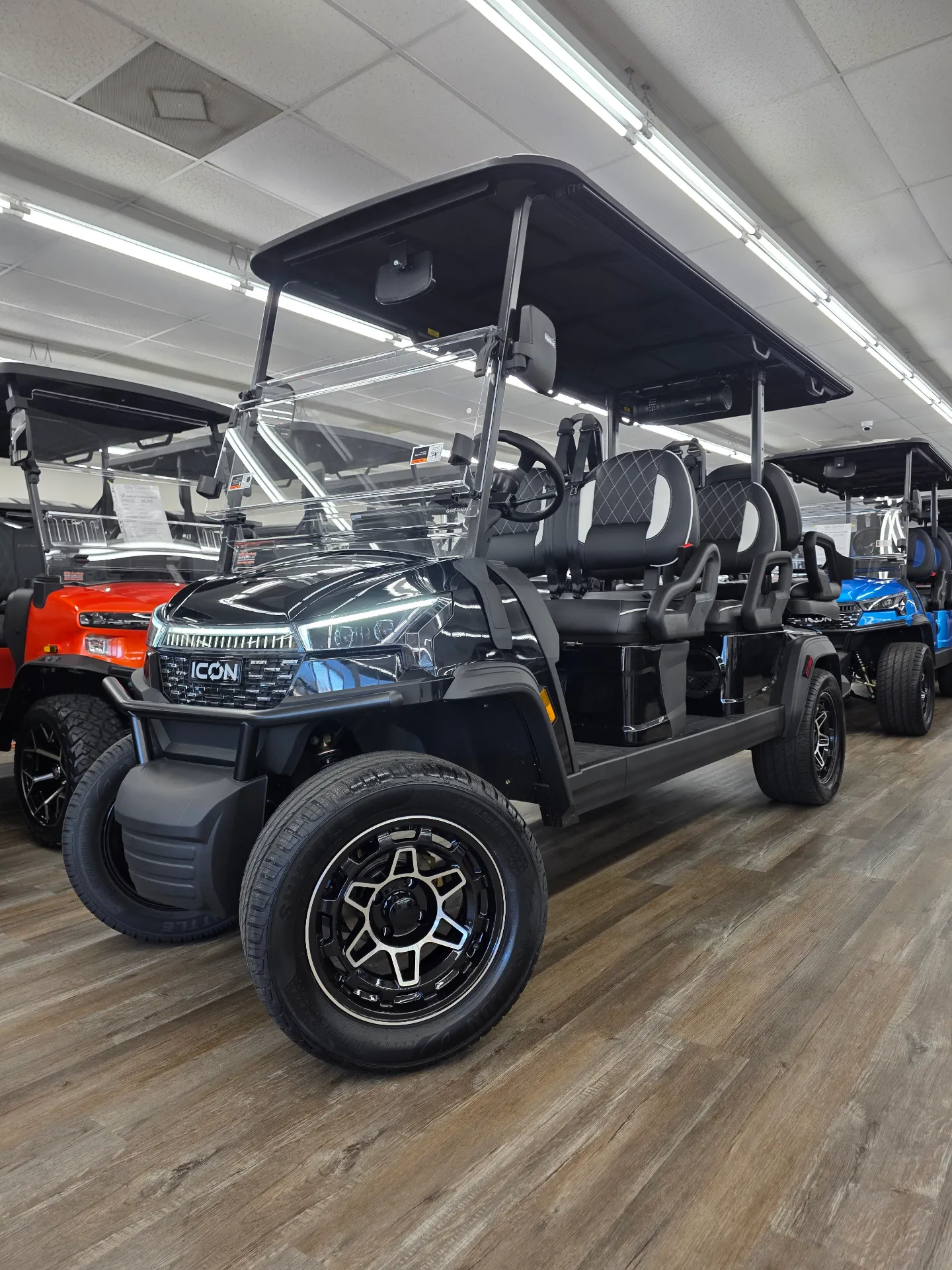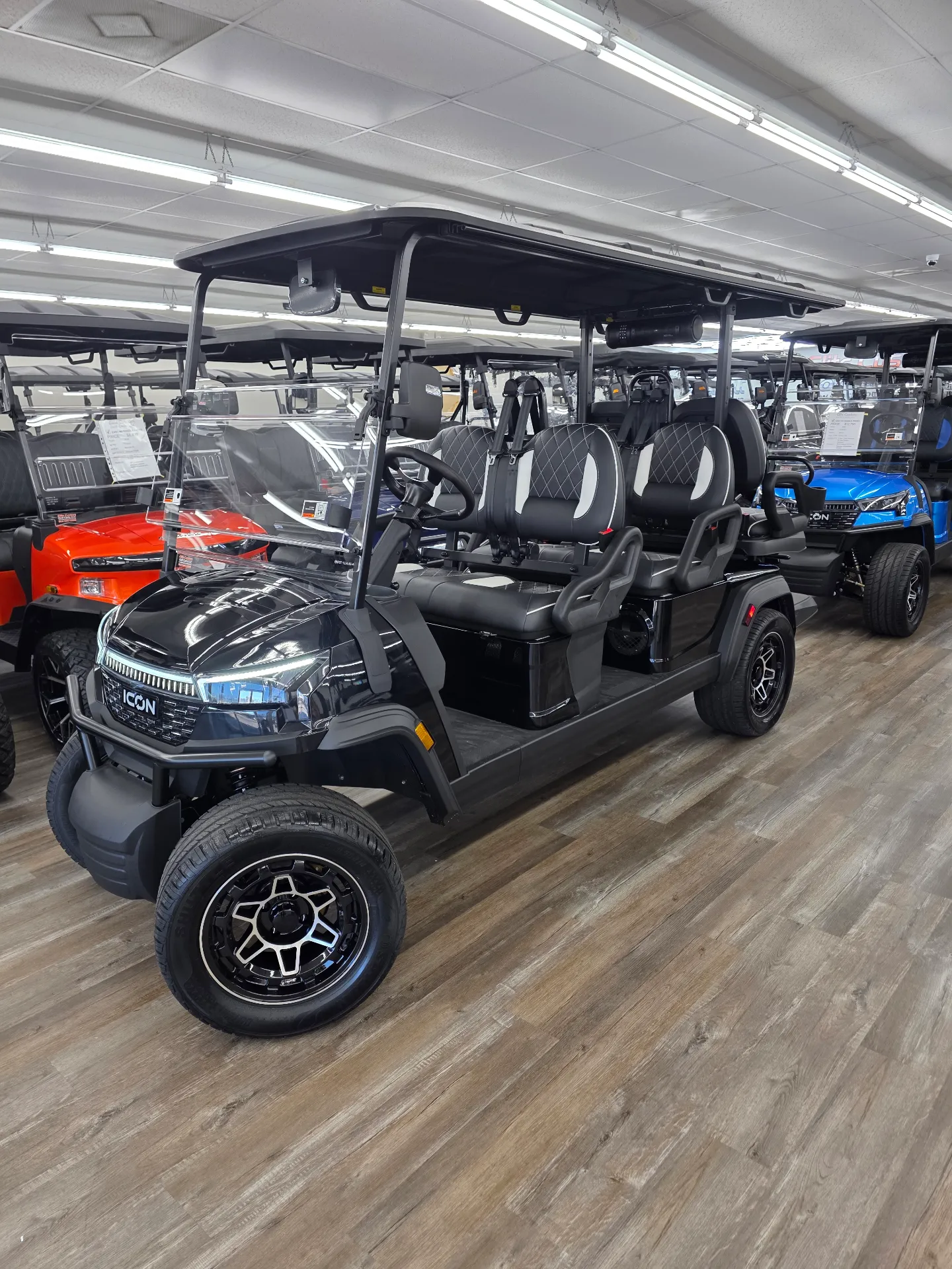 Spacious 6-passenger seating, lithium power, and a well-equipped safety and tech package make the i60LX a versatile golf cart for daily use.