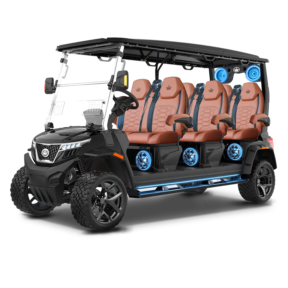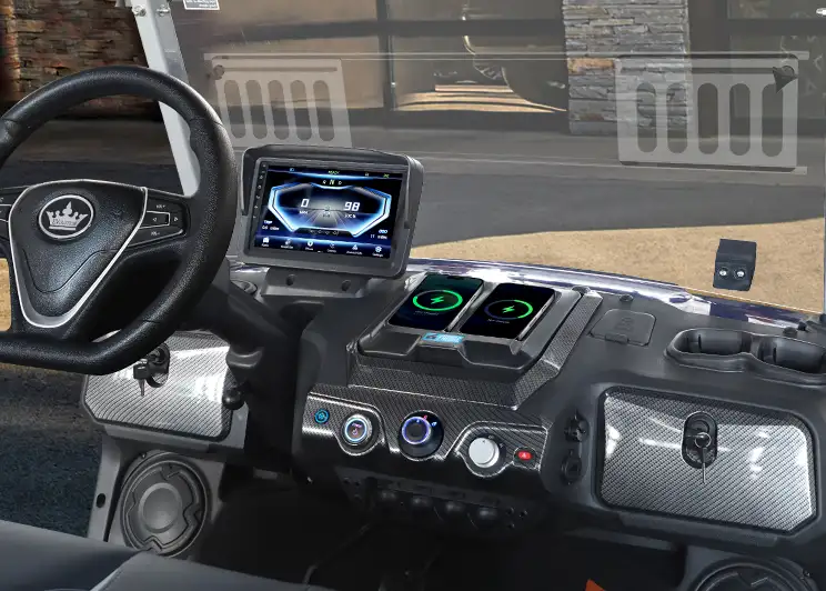 The 2026 Evolution D-Max XT6 represents the pinnacle of innovative golf cart design, merging robust 4-wheel drive capability with modern luxuries like a touchscreen infotainment system and a built-in refrigerator. Ideal for both rugged off-road adventures and smooth urban rides, this cart combines functionality with comfort, making it a top choice for enthusiasts.
