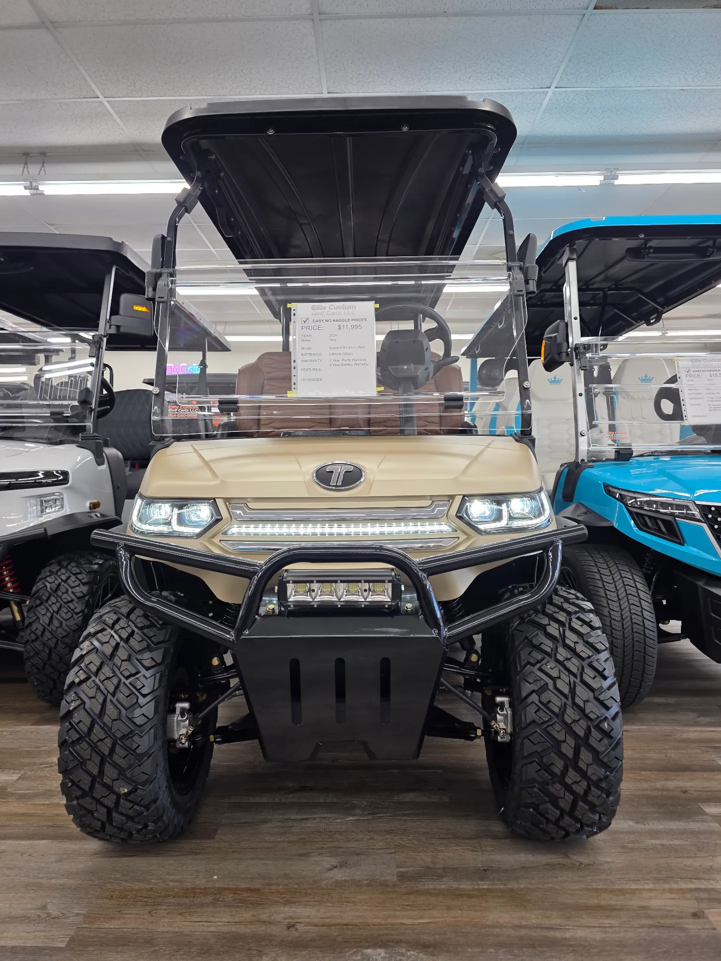 The 2026 Tara Summit Air 4+2 Lifted combines lithium power, lifted all-terrain capability, and practical 6-passenger seating in a feature-rich golf cart package.