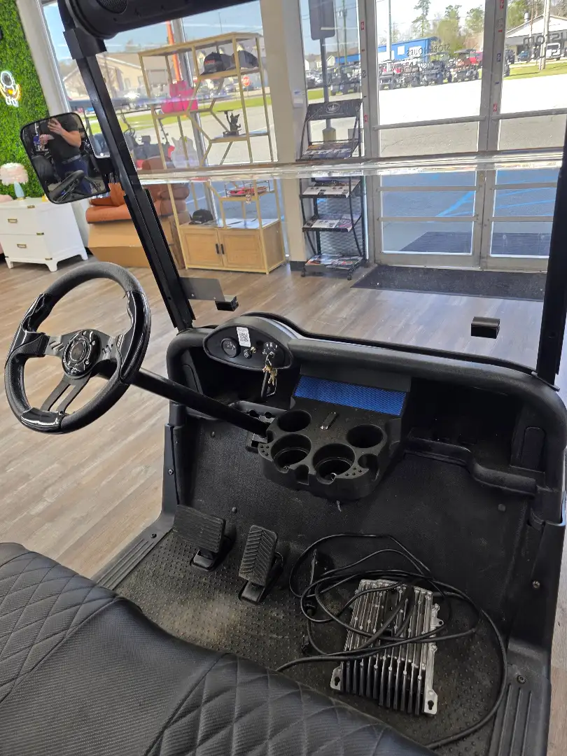 Experience driving efficiency with the E-Z-GO RXV, known for its 4.4 hp motor and impressive regenerative braking system. Crafted for durability and cost-efficiency.