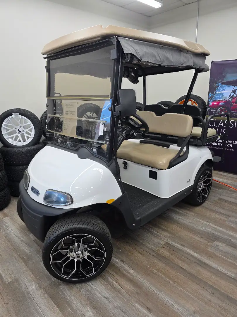This 2022 E-Z-GO RXV golf cart combines advanced technology with user-friendly features for an enjoyable driving experience.